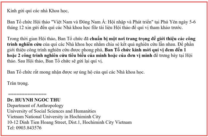 To Whom It May Concern: Attending in an International Conference in Vietnam