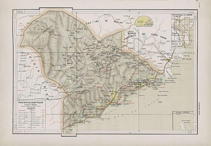 Hình 1. Bản đồ tỉnh Bình Thuận năm 1909 (địa bàn bao gồm cả một phần các tỉnh Lâm Đồng và Dak Nông ngày nay)