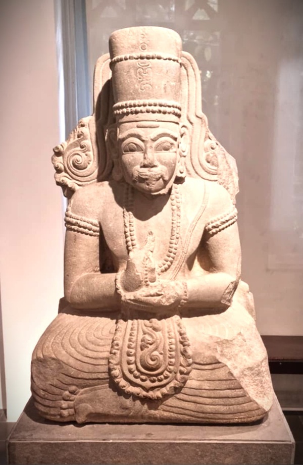 Hình 19. Thần Shiva, tu sĩ khổ hạnh bằng sa thạch vào thế kỷ 14. Hiện được thờ tại chùa Linh Sơn, Qui Nhơn, Bình Định. Ảnh: Sưu tầm.