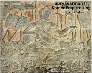 Hình 16.Vua Suryavarman II (1113 -1150), vua đế chế Khmer được miêu tả trong một bức phù điêu tại Angkor Wat. Vua Suryavarman II đã từng xâm chiếm Champa từ năm 1145 và thất bại Champa năm 1150. Ảnh: Khmer.