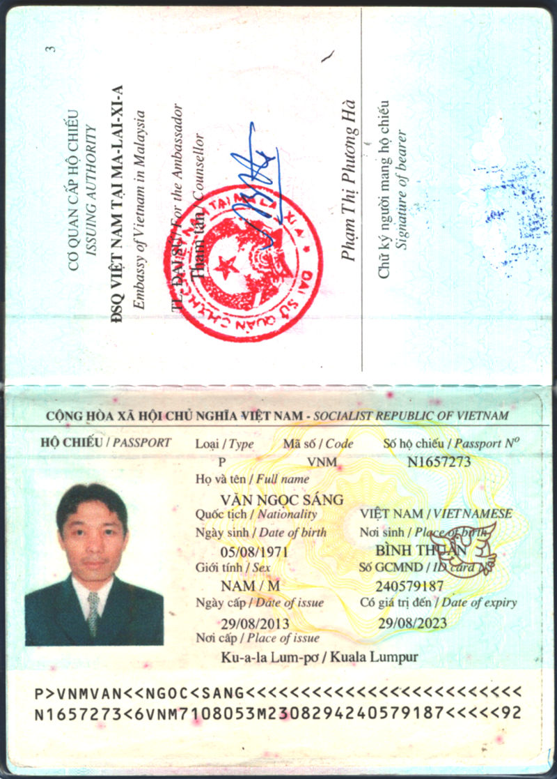 Putra Podam sang Hoa Kỳ bằng hộ chiếu (passport) do ĐSQ Việt Nam tại Malaysia cấp như Hình 1.
