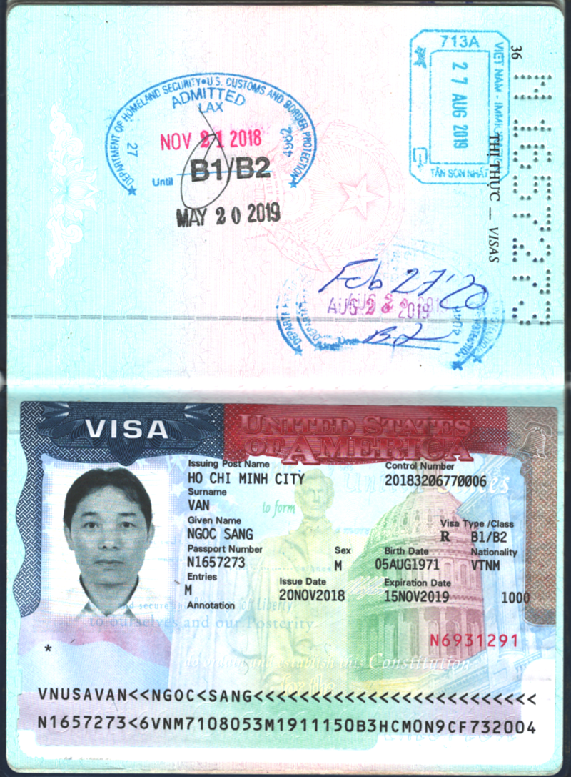 Hình 1. Ts.Putra Podam đi công tác tại California-Hoa Kỳ, hộ chiếu (passport) được cấp tại Đại Sứ quán Việt Nam tại Malaysia.