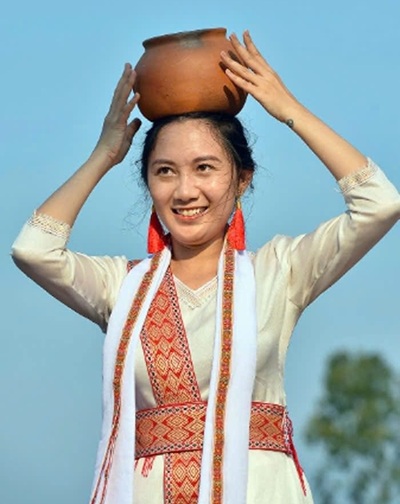Hình 2. Múa đội nước ( tamia ndua buk) nghệ thuật múa dân gian Cham (Chăm) tỉnh Ninh Thuận.