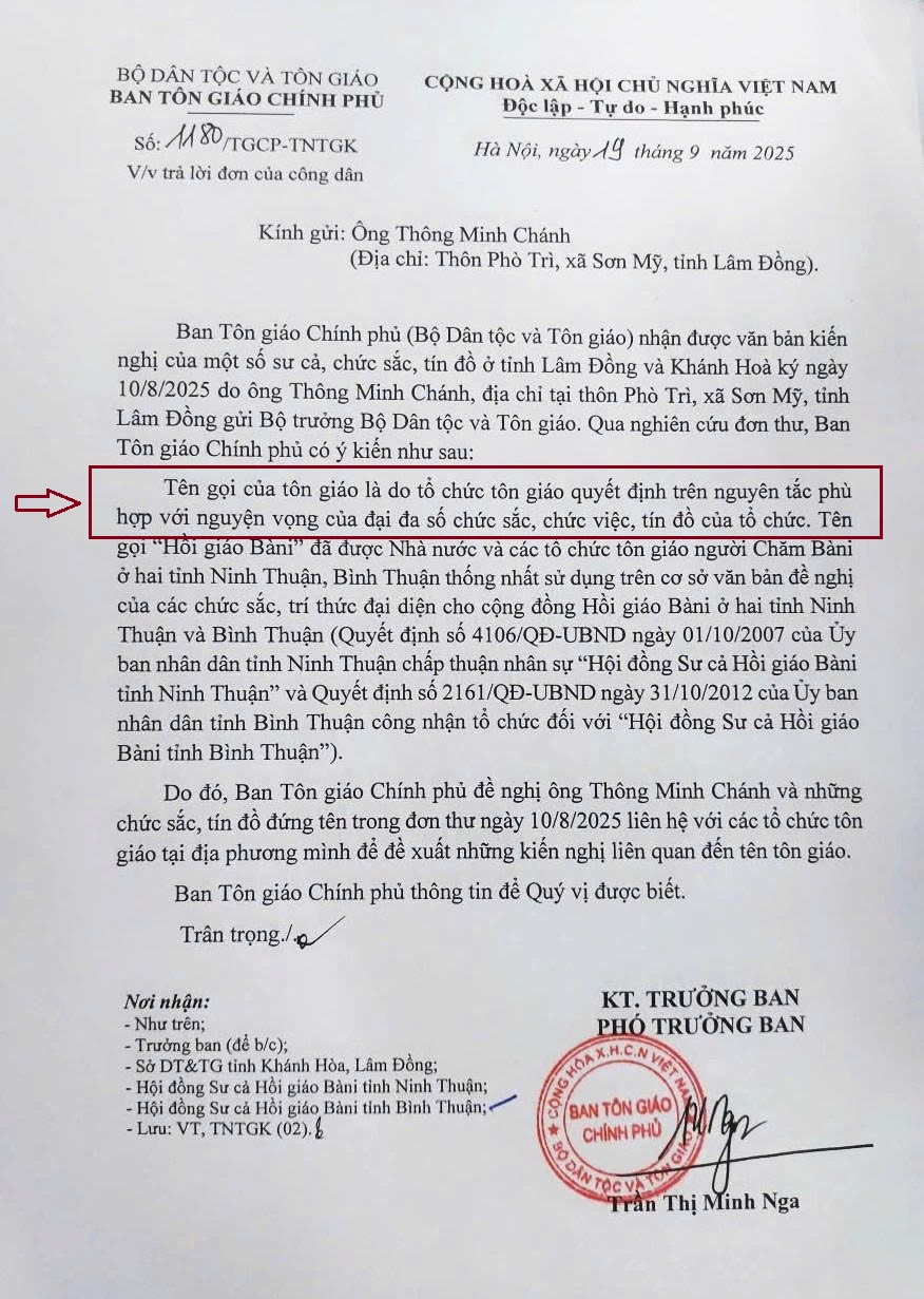 Văn bản này không chỉ gây nhầm lẫn trong nội bộ cộng đồng Cham, vốn đang có tranh chấp về tên gọi, mà còn tiềm ẩn nguy cơ tạo tiền lệ pháp lý sai lệch cho các hệ phái tôn giáo khác.