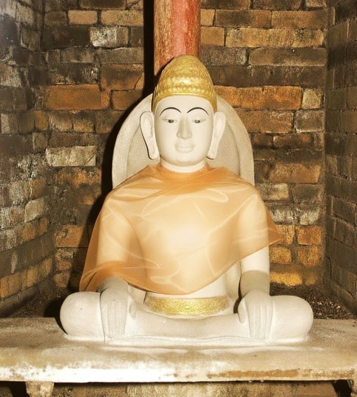 Hình 35. Tháp (Bimong) trước kia xây để thờ thần Shiva theo tín ngưỡng Hindu giáo (Hinduism). Khi vua Po Rome (1627-1651) mất, tín đồ Cham Ahier (agama Ahier) trưng dụng tháp Champa để thờ vua Po Rome theo tín ngưỡng Cham Ahier. Bức tượng Po Rome được khắc dạng Mukha Linga (thần Shiva). Vậy bức tượng bên trong tháp Po Rome là thờ vua Po Rome hóa thân thành Shiva. Ảnh: Putra Podam. “Figure 35. The tower (Bimong) was originally built to worship the deity Shiva according to Hinduism. When King Po Rome (1627-1651) passed away, Cham Ahier followers (agama Ahier) repurposed the Champa tower to venerate King Po Rome according to the Cham Ahier faith. The statue of Po Rome was carved in the form of a Mukha Linga (Shiva deity). Thus, the statue inside the Po Rome tower represents King Po Rome as an incarnation of Shiva. Photo: Putra Podam”.