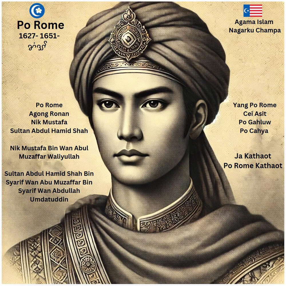 Vua Po Rome, được thế giới Melayu-Islam ghi nhận với danh xưng Sultan Abdul Hamid Shah và tên Hồi giáo thường gọi Nik Mustafa, là minh chứng tiêu biểu cho tầm nhìn, trí tuệ và lòng nhân ái của một vị minh quân. Ngài lên ngôi vào thời điểm đất nước gặp nhiều thách thức: ảnh hưởng ngoại bang gia tăng, nội bộ phân hóa, kinh tế suy giảm và đời sống dân chúng gặp nhiều khó khăn. Trong bối cảnh đầy biến động ấy, Po Rome không lựa chọn con đường bạo lực hay đối đầu cực đoan, mà theo đuổi đường lối hòa giải, cải cách và đặt lợi ích của nhân dân làm trọng tâm. Chính sự điềm tĩnh, khôn ngoan và lòng nhân đạo đã làm nổi bật bản lĩnh trị quốc của ngài, một vị vua thấu hiểu sâu sắc vận mệnh và nhu cầu của quốc gia Panduranga-Champa.