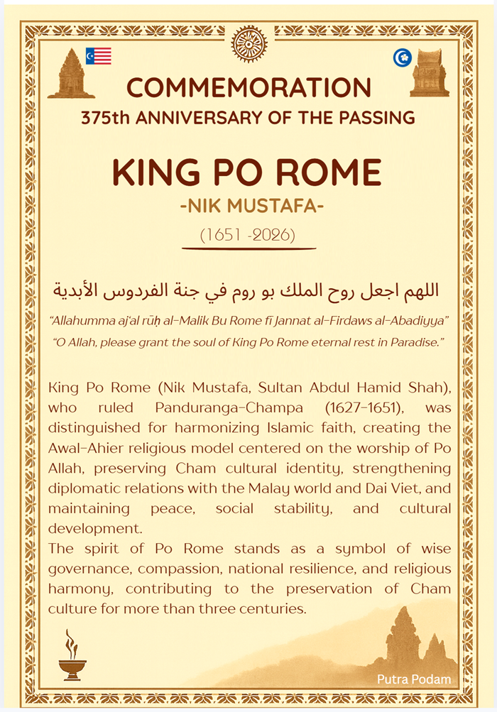 1. Putra Podam, Kỷ niệm 375 năm ngày mất vua Po Rome (Nik Mustafa): 1651-2026