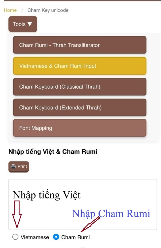 - Vietnamese and Cham Rumi Input (Nhập tiếng Việt & Cham Rumi)
