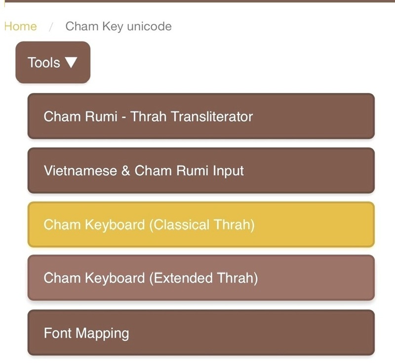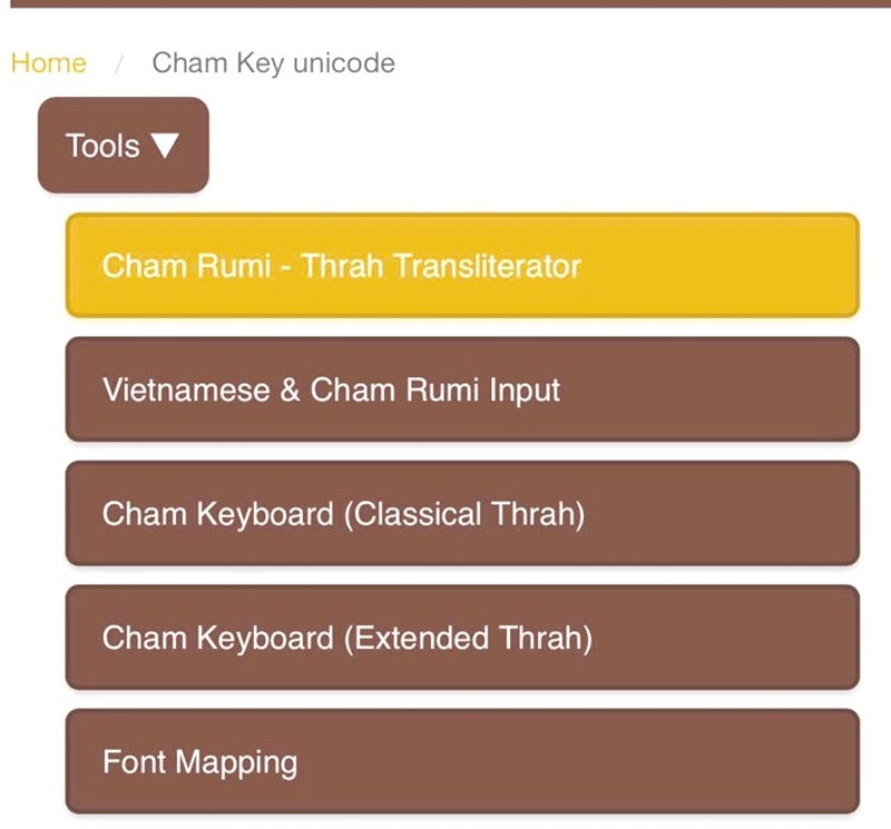 - Cham Rumi - Thrah Transliterator (Chuyển tự Cham Rumi - Thrah)
