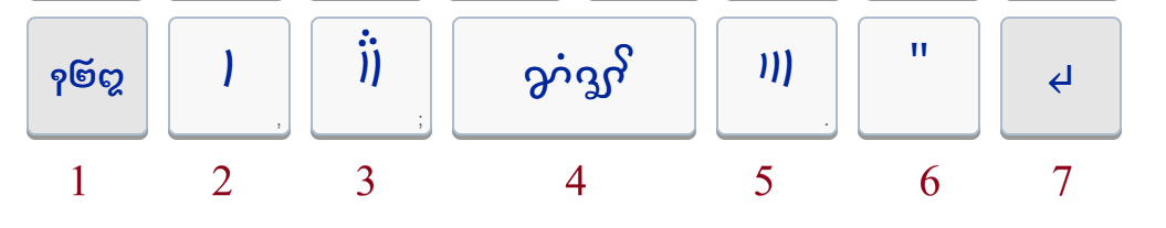- Nút 2: ꩝: Dấu kết thúc câu hoặc đơn vị văn bản chữ Thrah; tương đương với dấu chấm (.)