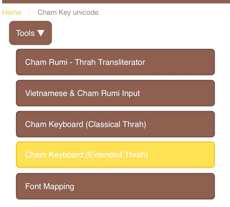 - Bàn phím Cham Thrah mở rộng (Extended Thrah Keyboard)