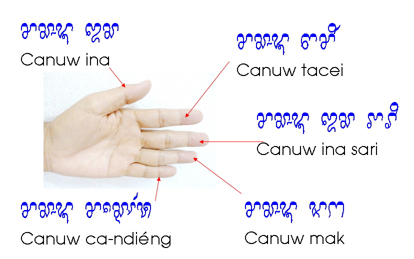 Canuw ca-ndiéng Little finger Ngón út |